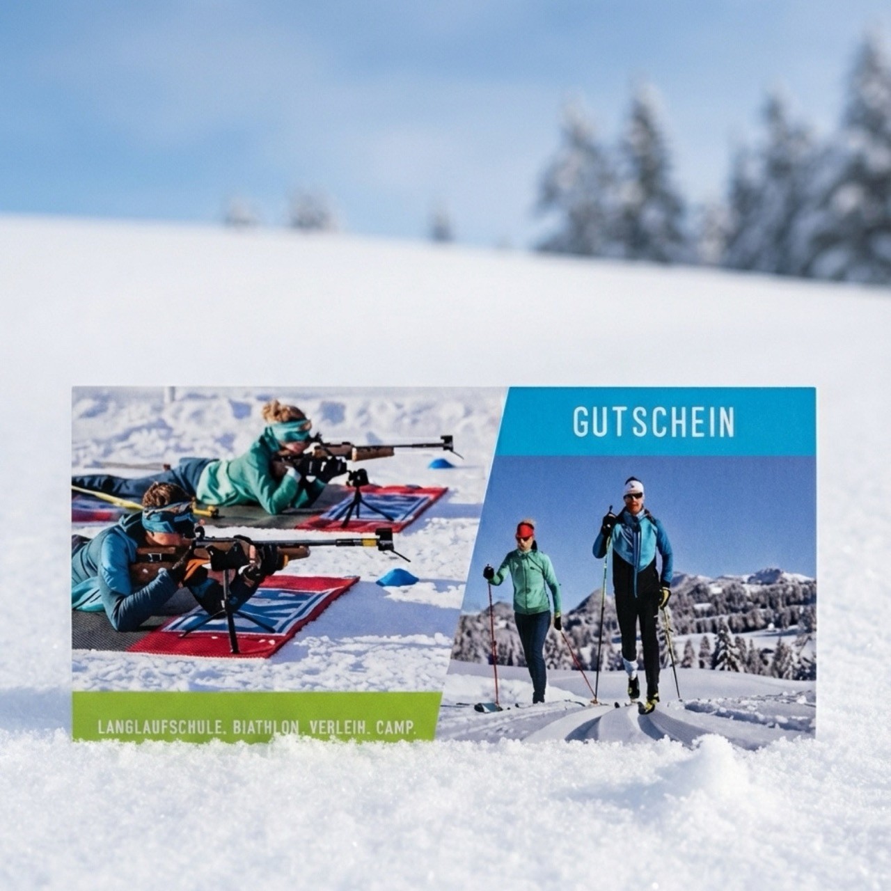 Verschenke pure Wintersportfreude! Wähle zwischen digitalem Gutschein per E-Mail oder hochwertigem Gutschein per Post – einlösbar für alle Kurse & Events bei Biathlon Allgäu.